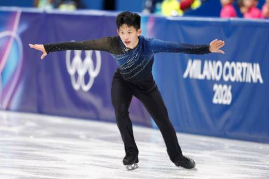 フィギュアスケート男子SPで演技する台湾の李宇翔=10日、ミラノ(共同)