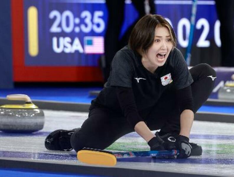 日本―スウェーデン 第6エンド、指示を出す吉村=コルティナダンペッツォ(共同)