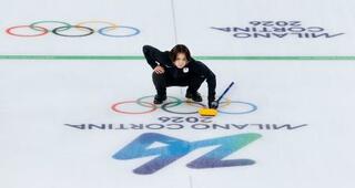 日本―スウェーデン 第8エンド、ショットの行方を見る吉村=コルティナダンペッツォ(共同)