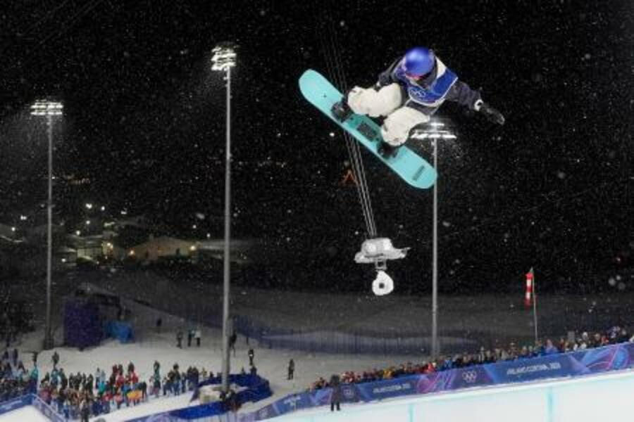 女子ハーフパイプ決勝 技を決める小野光希=リビーニョ(共同)