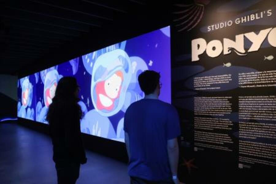 12日、米ロサンゼルスのアカデミー映画博物館で報道公開された「崖の上のポニョ」の展示会(共同)