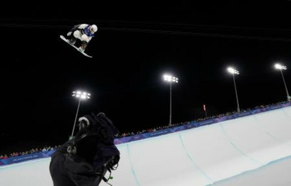 男子ハーフパイプ決勝 1回目に臨む山田琉聖=リビーニョ(共同)