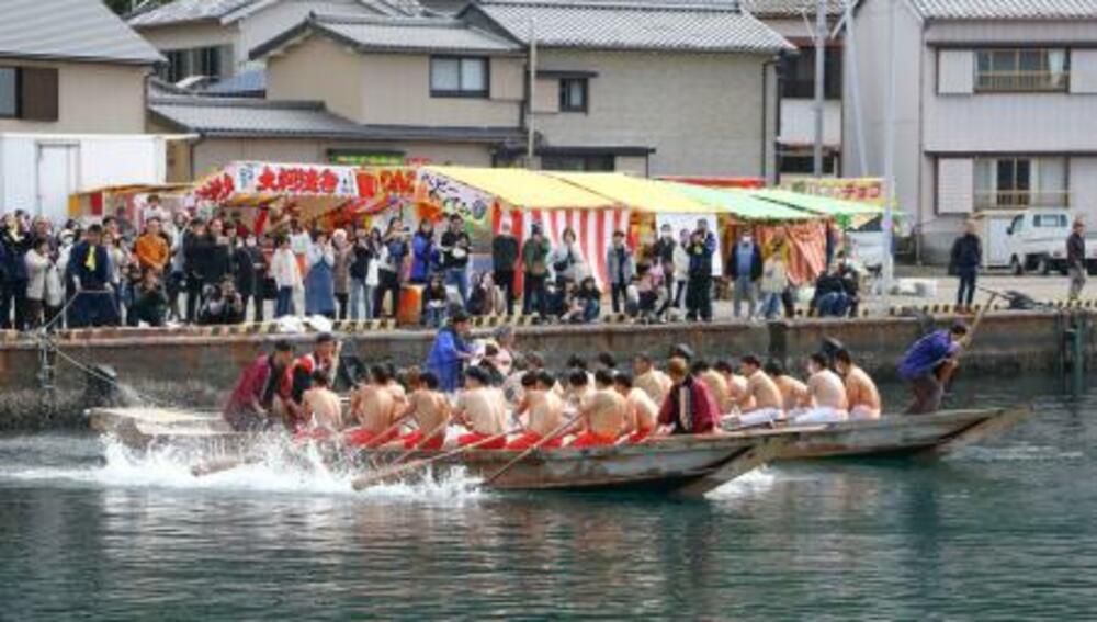 和歌山県串本町の水門祭の「櫂伝馬競漕」=14日午後