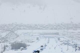 スノーボードのスロープスタイルで練習が行われたリビーニョ・スノーパーク=14日、リビーニョ(ゲッティ=共同)
