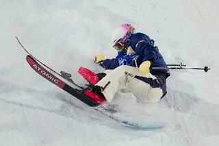 女子ビッグエア予選の2回目で転倒した古賀結那=リビーニョ(共同)