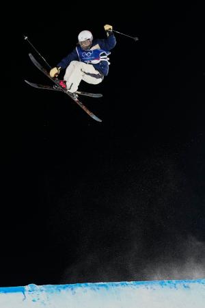 女子ビッグエア予選 ジャンプする古賀結那。この後転倒した=リビーニョ(共同)