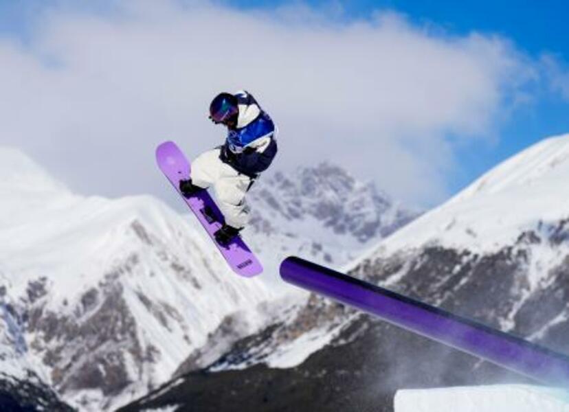男子スロープスタイル予選 ジャンプする木俣椋真=リビーニョ(AP=共同)
