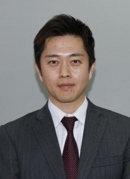 記者団の取材に応じる日本維新の会の吉村代表=16日午後、大阪府庁