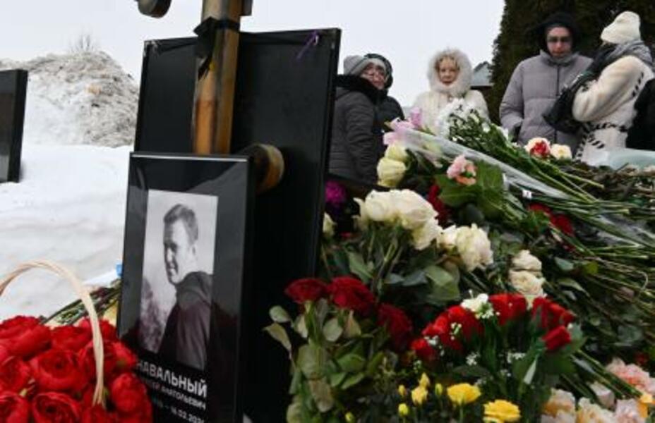 命日に当たる16日に多くの花が手向けられたナワリヌイ氏の墓=モスクワ(共同)