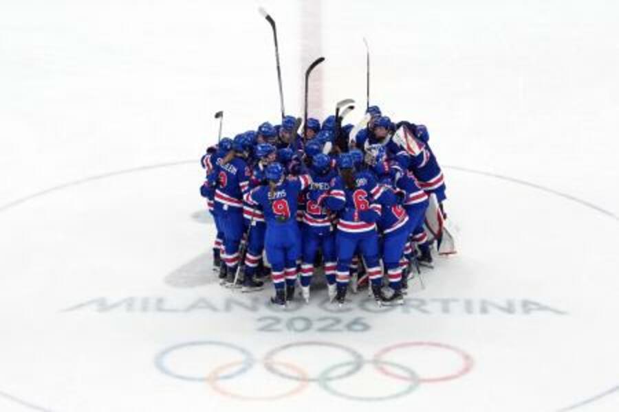 準決勝のスウェーデン戦に勝利し、喜ぶ米国女子の選手たち=16日、ミラノ(AP=共同)