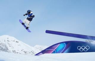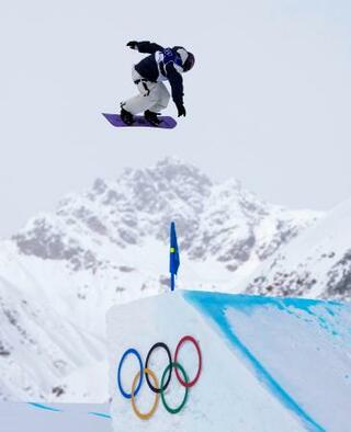 男子スロープスタイル決勝 ジャンプする長谷川帝勝=リビーニョ(共同)