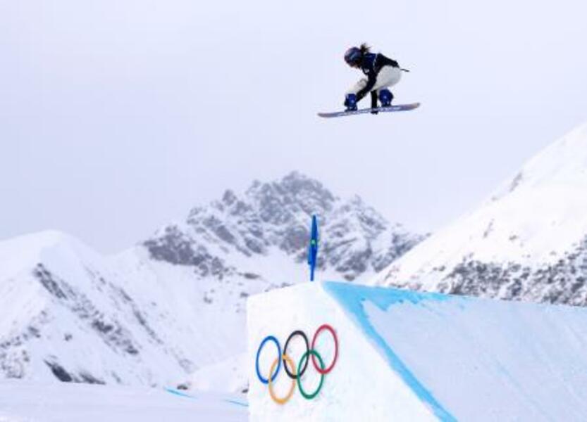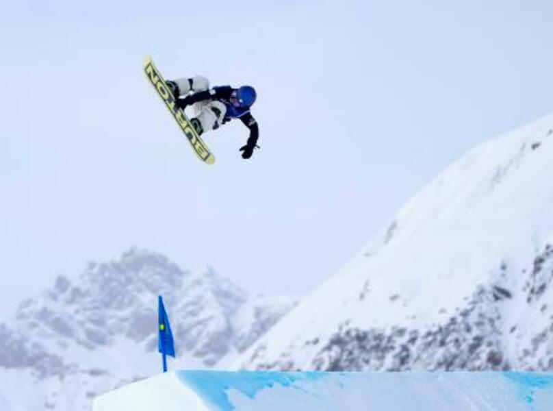 女子スロープスタイル決勝 ジャンプする村瀬心椛=リビーニョ(共同)