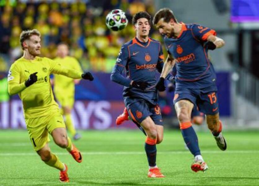 ボデグリムト戦で競り合うインテル・ミラノのアチェルビ(右)=ボーデ(AP=共同)