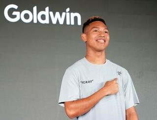 スポーツ用品大手ゴールドウインとの契約を発表した陸上男子短距離のサニブラウン・ハキーム=19日、東京都内