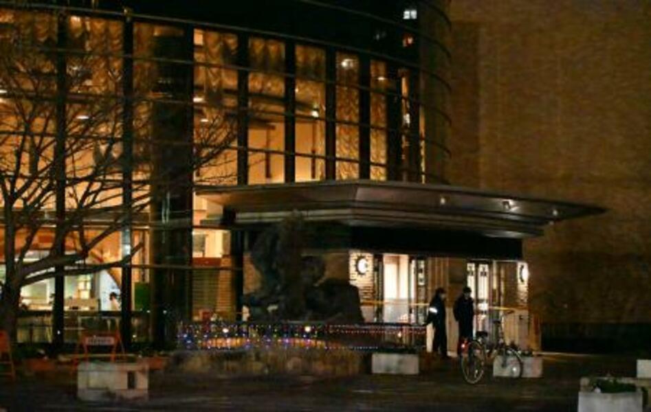 3人が刺される事件があった福岡市総合図書館=19日午後8時50分、福岡市早良区