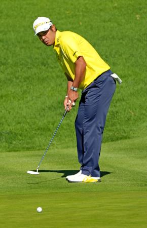 最終ラウンド、通算6アンダーで28位の松山英樹=リビエラCC(共同)