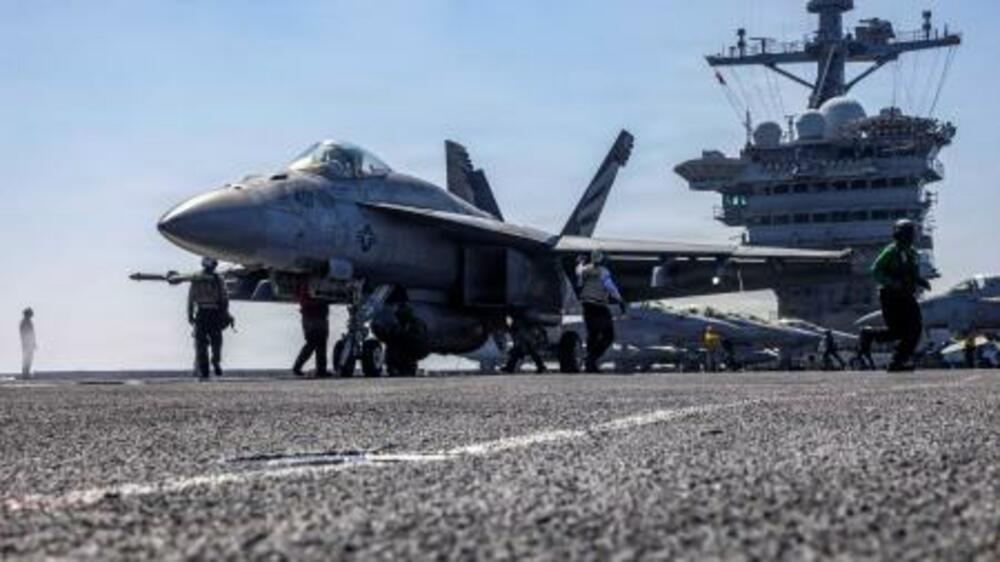 アラビア海に展開中の米空母上の艦載機=15日(米海軍提供、ロイター=共同)