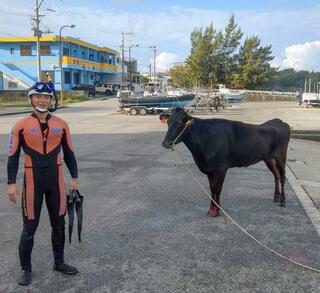 泳ぐ牛救助、海保の潜水士