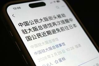 日本への渡航自粛を呼びかける在大阪中国総領事館の「微信(ウィーチャット)」の投稿=26日、北京(共同)