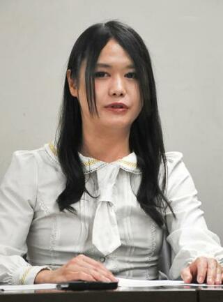 和解を受け記者会見するタレントの大島薫さん=26日午後、東京・霞が関の司法記者クラブ