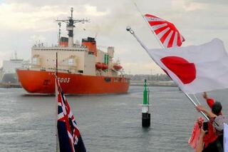 オーストラリア西部・フリマントルを出港する南極観測船「しらせ」=26日(南極観測隊同行記者撮影)