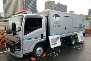道路を走行しながら地下の空洞を調査する車両=2025年12月、東京都内