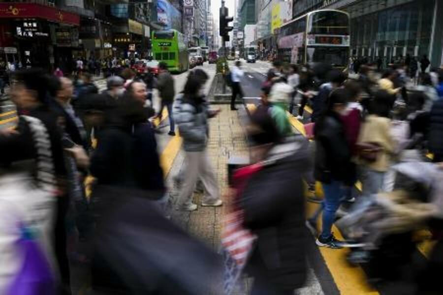 香港の繁華街を行き交う人たち=2024年