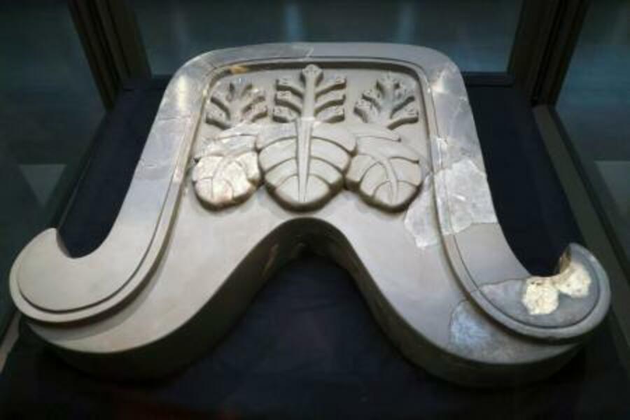 宇陀松山城跡から出土した「桐文鬼瓦」=奈良県橿原市