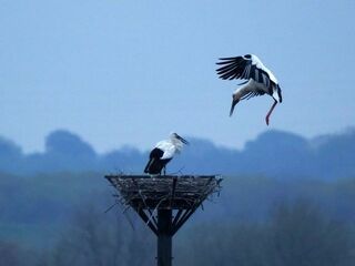 栃木・渡良瀬遊水地の人工巣塔、コウノトリペアが産卵か 托卵で市内初のひ…