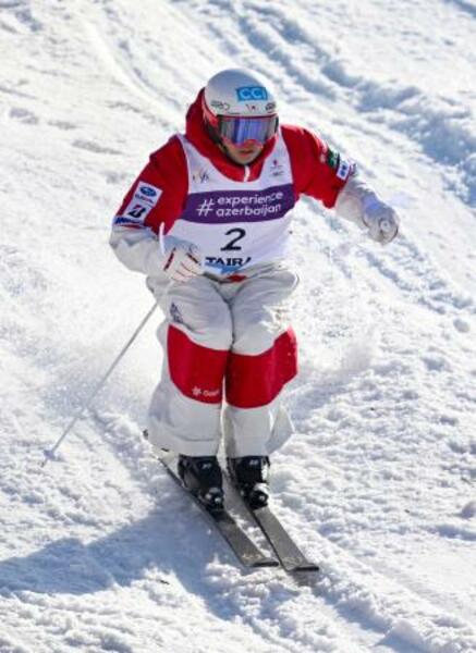 男子デュアルモーグル決勝 コブを攻める堀島行真=たいらスキー場