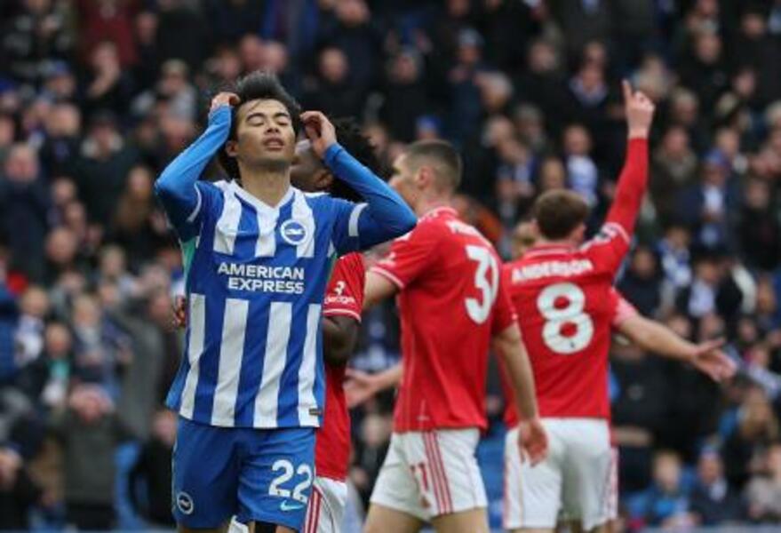 ノッティンガム・フォレスト戦でプレーするブライトンの三笘薫=1日、ブライトン(ロイター=共同)