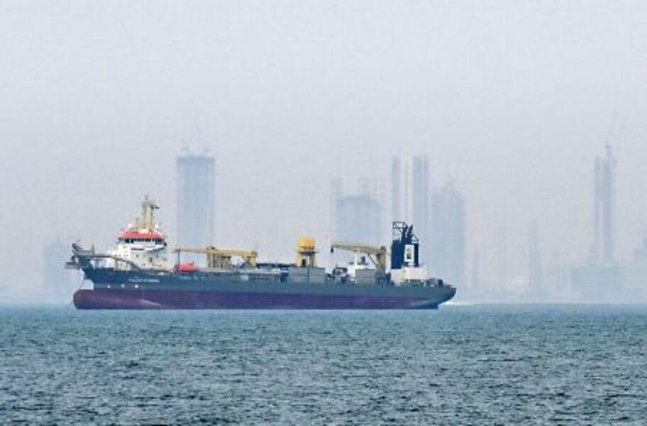 ホルムズ海峡が封鎖状態となり、ドバイ沖に停泊する船舶=2日(ゲッティ=共同)