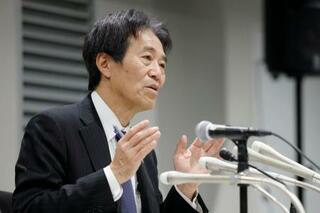記者会見する清算人の伊藤尚弁護士=4日夜、東京都中央区