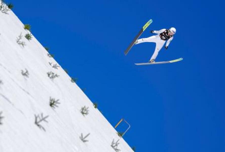 W杯ジャンプ女子個人第28戦で3位に入った丸山希=ラハティ(共同)