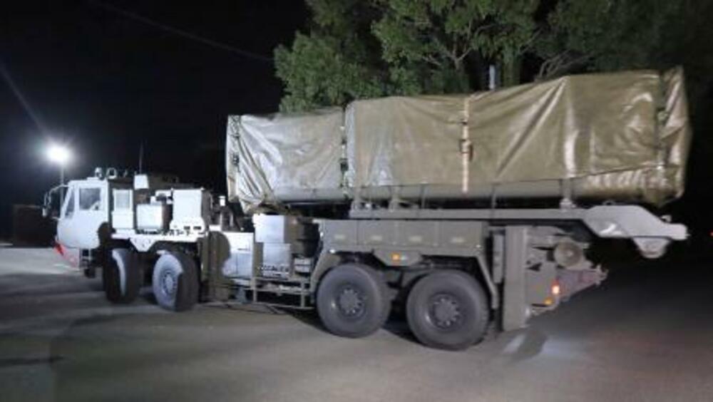 陸自健軍駐屯地に到着した長射程ミサイルの車両=9日未明、熊本市