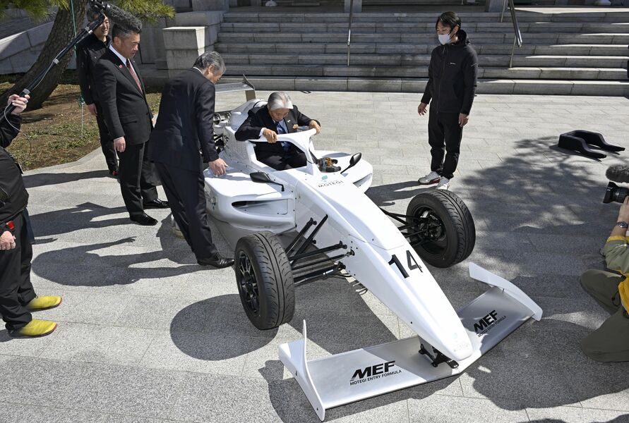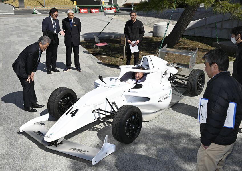 真岡工業高にF1カー登場 「真工通り」命名祈念で展示 大迫力のエンジン…