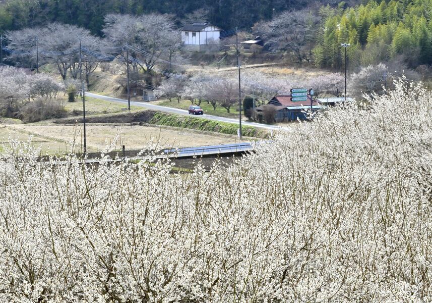 梅の甘い香り漂う 花付き良く、紅白の花が境内彩る 芳賀天満宮