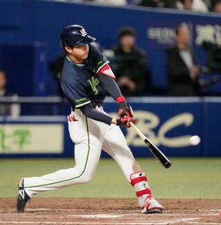 3回、左越えに3ランを放つヤクルト・鈴木叶=バンテリンドーム