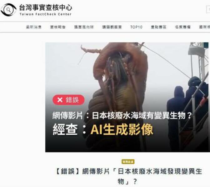 AIで作成されたとみられる、生物が変異したとする偽画像(台湾ファクトチェックセンター提供)