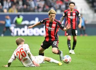 ハイデンハイム戦でプレーする堂安律(中央)=14日(ゲッティ=共同)
