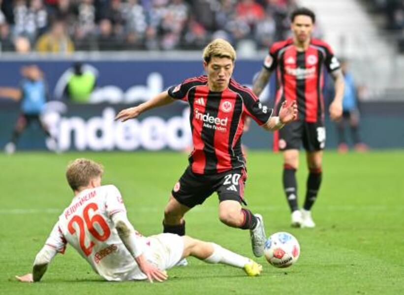 ハイデンハイム戦でプレーする堂安律(中央)=14日(ゲッティ=共同)