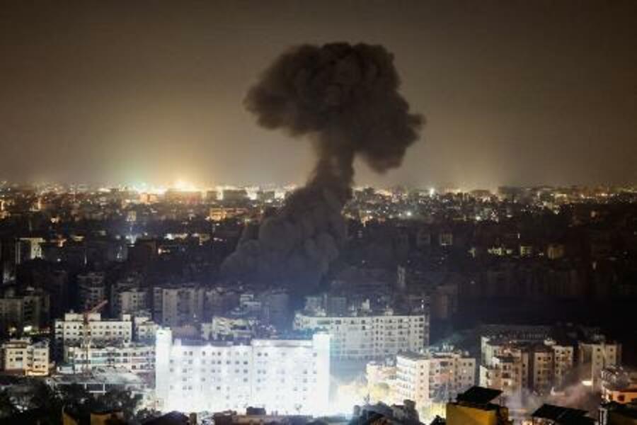 13日、レバノンの首都ベイルート南部で立ち上る煙(ロイター=共同)