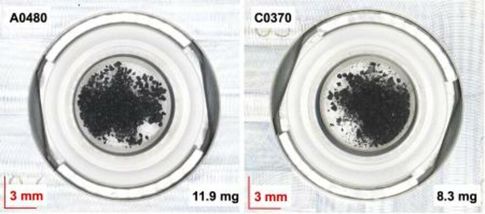 海洋研究開発機構などのチームが分析した小惑星リュウグウの2種類の砂試料(JAXA、海洋機構提供)