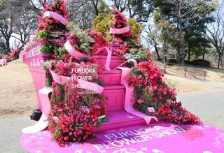 花の祭典「フクオカフラワーショー」の会場内に設置されたフォトスポット=20日、福岡市植物園