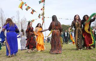 新春を祝う祭り「ネウロズ」で踊る在日クルド人ら=22日午後、さいたま市
