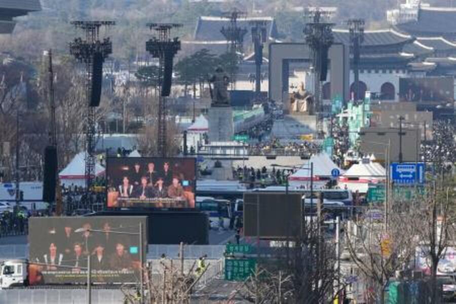 BTS復帰公演の会場、光化門広場=21日、ソウル(ロイター=共同)