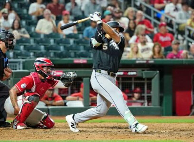 レッズ戦の8回、右前打を放つホワイトソックス・村上=グッドイヤー(共同)