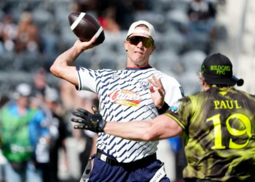 フラッグフットボールの大会に出場したトム・ブレイディさん=ロサンゼルス(ロイター=共同)