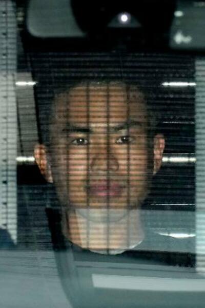 送検のため、警視庁麻布署を出る村田晃大容疑者=26日午前9時