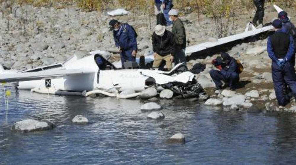 墜落したグライダーを確認する運輸安全委員会の航空事故調査官ら=2021年、北海道美瑛町